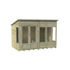 Forest Garden Oakley 10×6 Pent Overlap Solid Wood Summer House With Double Door (Base Included)