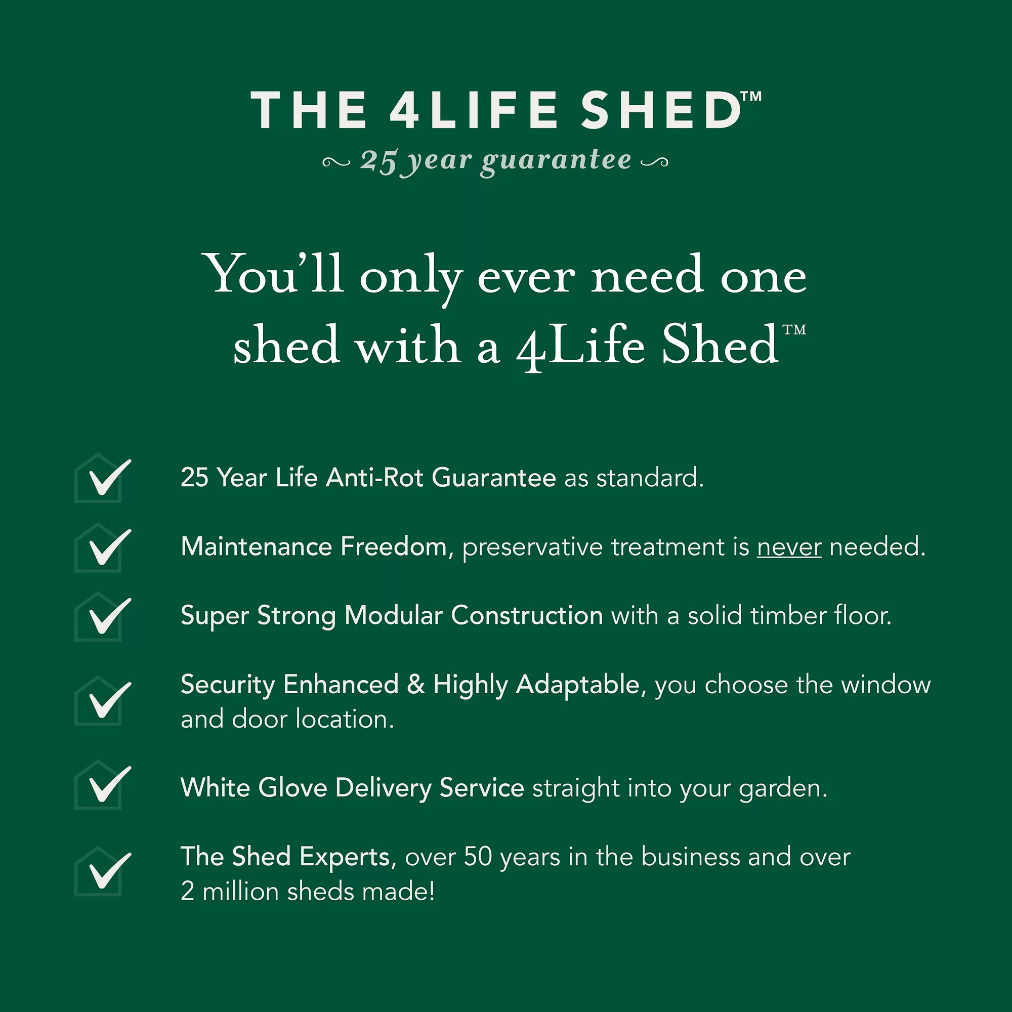- Pressure treated with a 25 year guarantee, the longest guarantee on the market.
