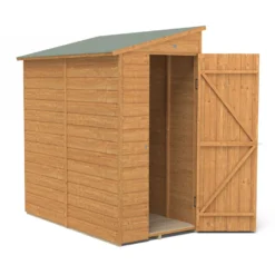 This high quality Dip Treated Shiplap Tongue & Groove 6×3 Pent Shed from Forest is an ideal storage solution where space is limited. Its pent roof and door placing at the end of the shed makes it ideal for locating in otherwise unused space at the side of buildings. The shed’s improved design features smaller sections, making it easy to handle and quick to assemble. The shed can be constructed with the pent roof sloping either side. Incorporating more timber framing than previously, this makes the shed stronger and long lasting. This pent garden shed is constructed using interlocking Shiplap Tongue & Groove boards which makes it robust and weather resistant.