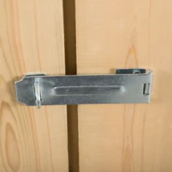 - Doors can be closed with the plate hasp and staple latch and secured with a padlock (not included)