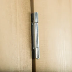 - Plate hasp and staple latch for use with a padlock (not included) and hidden door hinges for added security