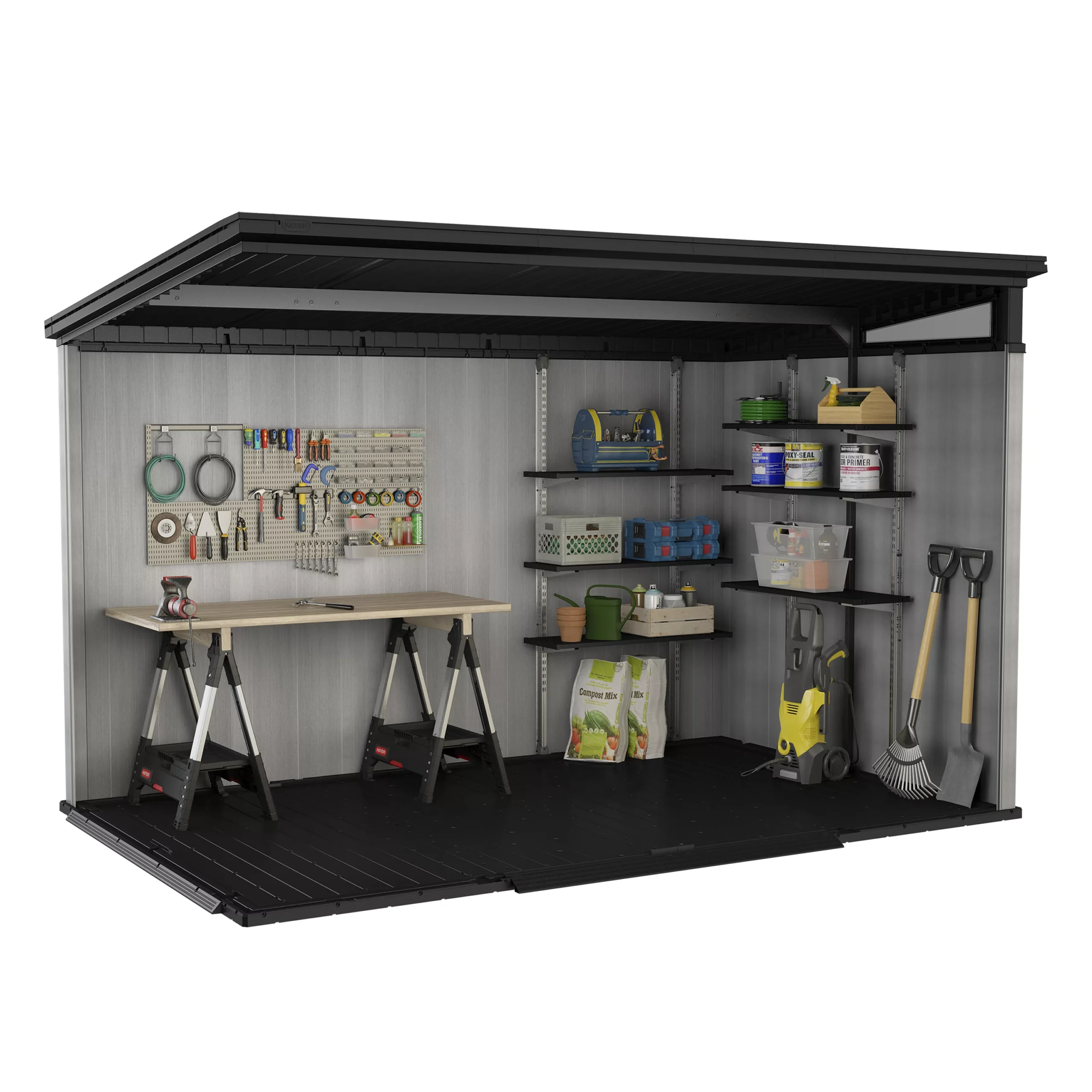 - A premium ideal outdoor storage solution for all garden tools and equipment, garden furniture including BBQ’s, bicycles and DIY tools
