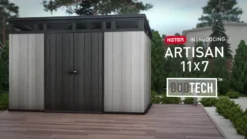 A perfect blend of modern design and ruggedness, the cleverly architected Artisan 11ft x 7ft shed provides the ideal outdoor storage solution for your garden. The innovative DUOTECH™ walls are not only highly durable and weather resistant, but they also feature an attractive wood-like texture and paintable surface.