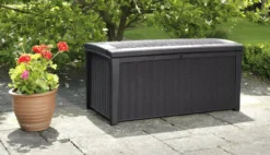- Ideal outdoor storage box for garden tools and equipment, furniture cushions, garden games and accessories