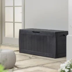 - Ideal outdoor storage box for garden tools and equipment, furniture cushions, garden games and accessories