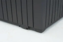The durable resin construction of the Springwood Garden Storage Box provides it with full weather resistance as well as an attractive wood-like texture, making this a versatile storage solution. It has a capacity of 302 L/80 G, can support up to 250 kg/551 lbs on its lid to seat two adults, and has built-in handles and rollers. It’s also lockable and easy to assemble.