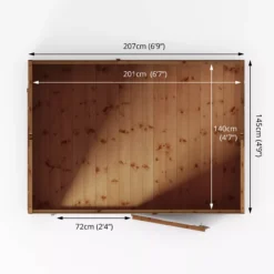 This 7ft x 5ft Shiplap Reverse Apex Shed offers the perfect garden storage solution without breaking the bank. This building’s spacious interior is ideal for storing all your garden tools and accessories. Featuring an apex roofline, this shed benefits from a generous roof height. That is great for storing tall items such as ladders and a strimmer. Made in the UK using FSC® certified timber, this building is a great choice for households that need a compact garden shed. This garden shed is manufactured using high-quality interlocking tongue and groove boards. Providing your garden with a hard-wearing and reliable storage space.