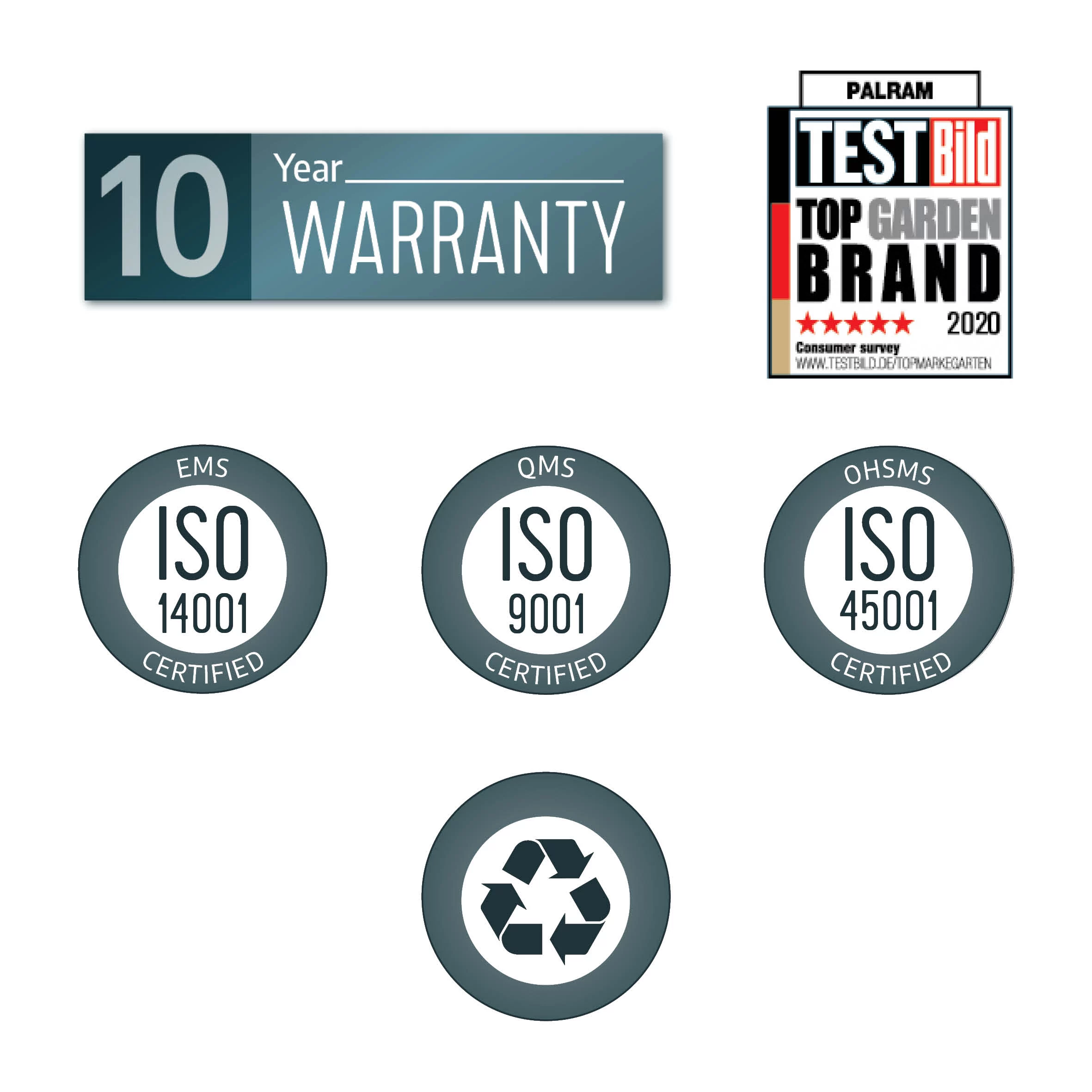 - Robust structure – durable & rust resistant anthracite powder coated aluminium profiles and galvanised steel connectors