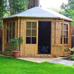 This Belvoir 10×10 log cabin with felt roof tiles is perfect for use as a summerhouse, workshop or extra storage space. With assembly service.