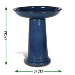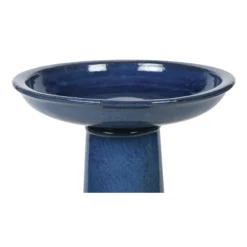 Give birds a warm welcome to your garden with this ceramic birdbath. Featuring a deep blue glaze finish and an easy assemble design. This birthbath will make the perfect addition to any garden space, looking for a traquil finishing touch!