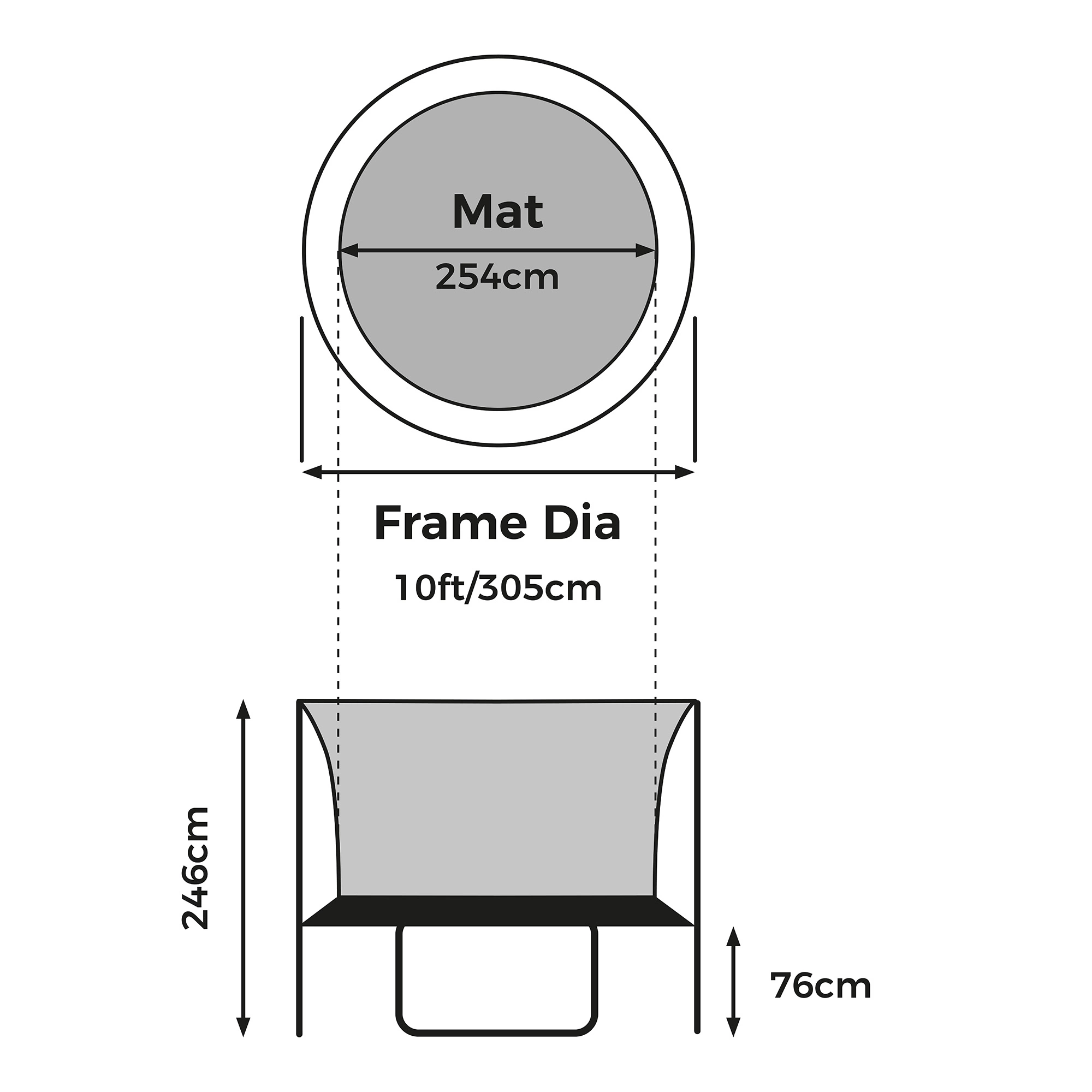 - Trampoline Ladder, cover, and integral shoe tidy included
